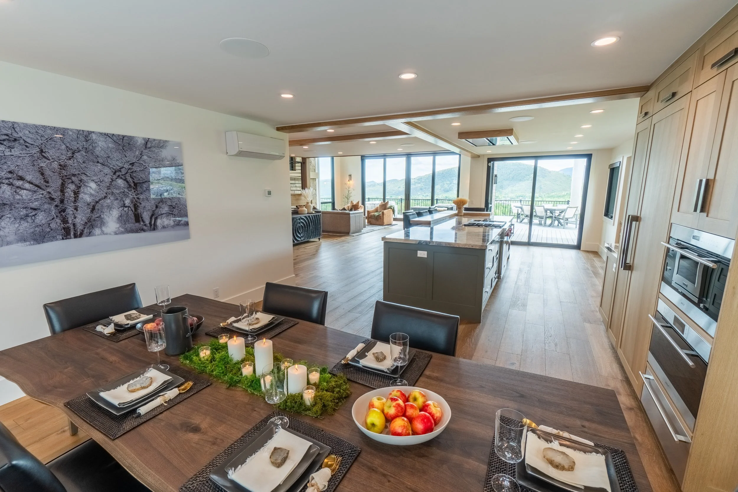 This 1993 home with uninterrupted views of Deer Valley and Canyons Resort needed to be brought up to date - by completely gutting it. A large addition, floor plan reconfiguration, a brand-new kitchen, and new windows throughout the entire home, along with custom finishes brings this Park City home into the new century. Warm and organic materials pair with classic furniture styles for a timeless look.